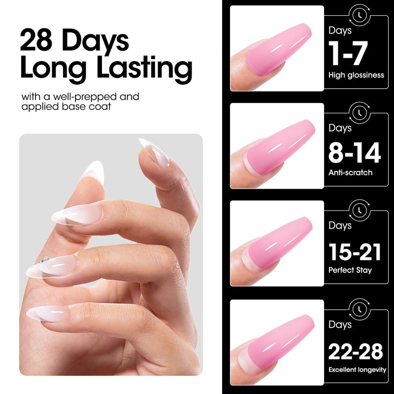 • 【Quick Building & Long lasting nail art】Gellen Poly Nail Extension Gel can last for about 28 days or longer with proper nail prep (filing, buffering, cleaning) and apply nail dehydrator and primer and base coat. Using a slip solution or base coat will make shaping easier. The polygel allows for effortless placement and shaping on Dual Forms, or on Nail Forms, or on Nails Tips and Natural Tips.