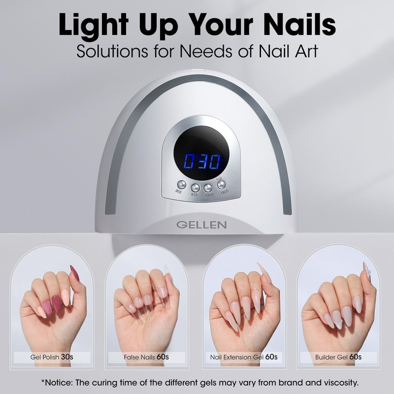 - Professional Nail Experience: Gellen gel nail lamp has been tested and certified by authorities. Verified adaptor, timers, cord and beads allow the nail light having longer lifetime. Gift you or her the safest beauty and enjoy being glowing