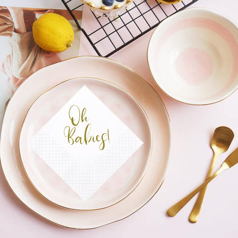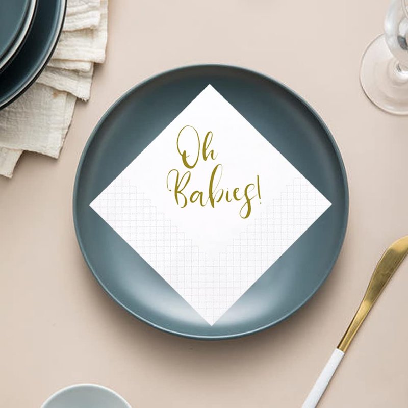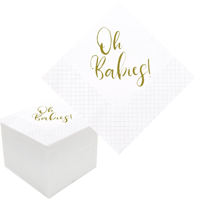 - Geloar gold Oh Babies Cocktail Napkins for Baby Shower are a fun way to celebrate an event, especially a birthday, bachelorette party or cocktail party! Quote the napkin and add some cheer to your celebration! Each package includes a set of 100 napkins made of durable 2-ply paper, ensuring they are absorbent and soft.
