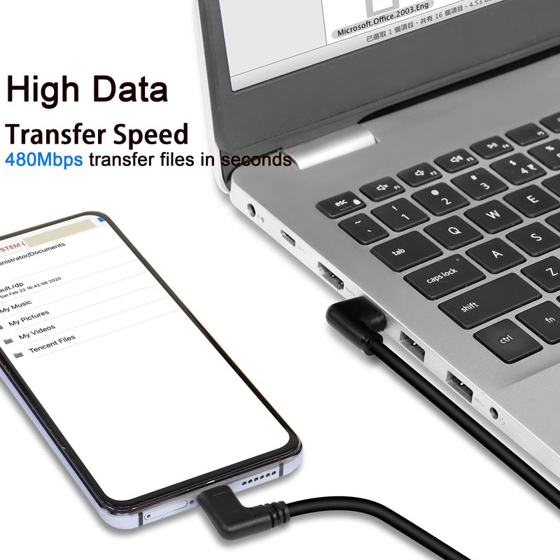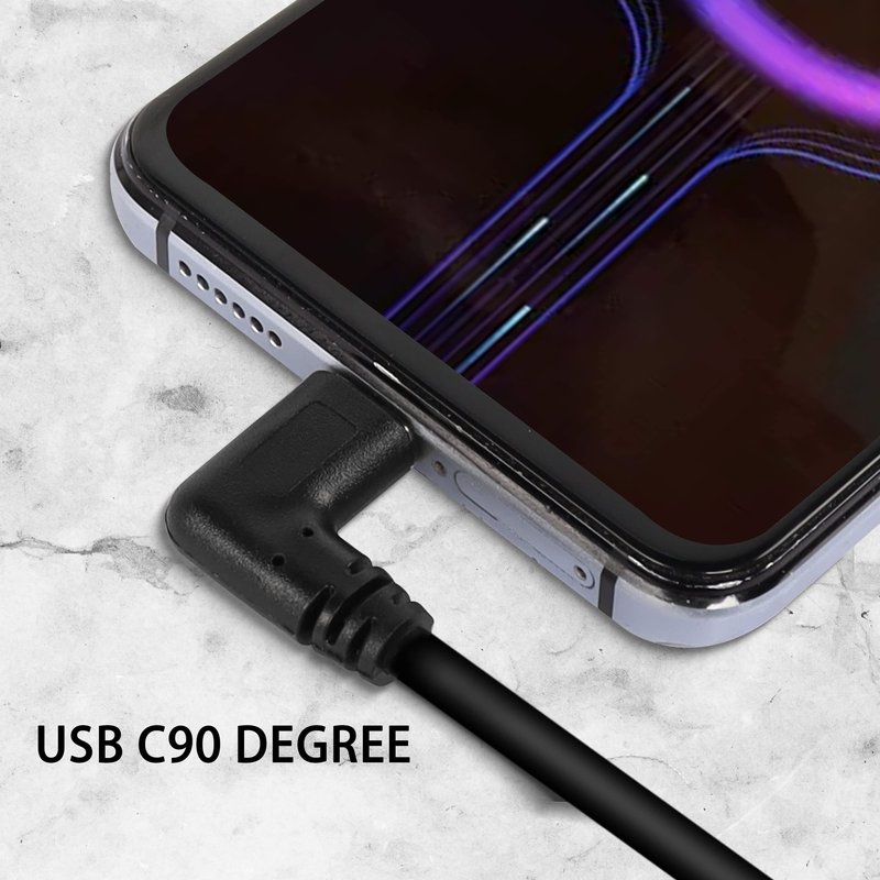 - ✪ Left Angled USB C: 90-degree USB c cable features L style ends, which can fit the device sideways in case it interferes with your hands playing games, watching videos, or surfing while charging.