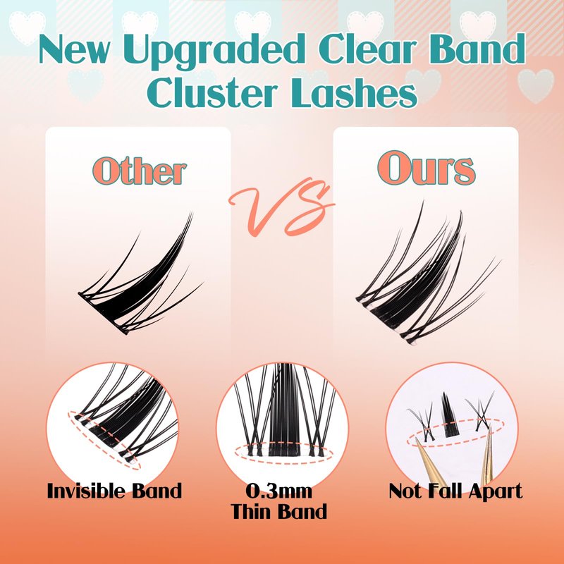 - Invisible Eyelash Band: Lash cluster bands are made with upgraded materials and technology so that the bands are thinner, and softer, so it can better flatter your natural lashes and create a natural effect.