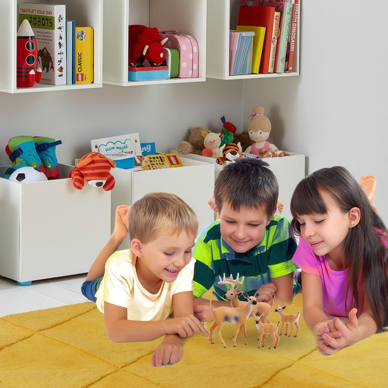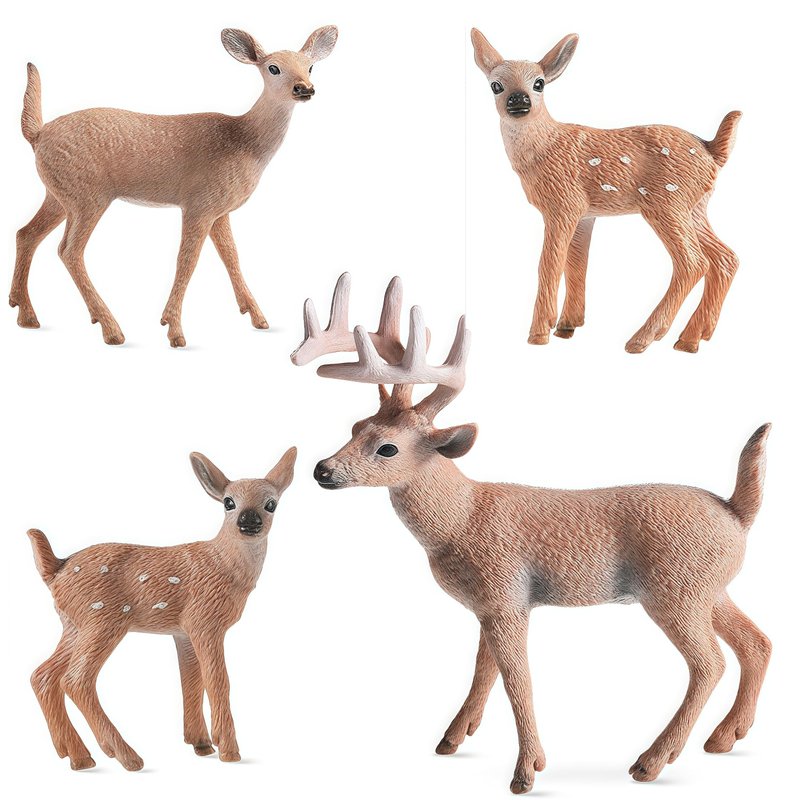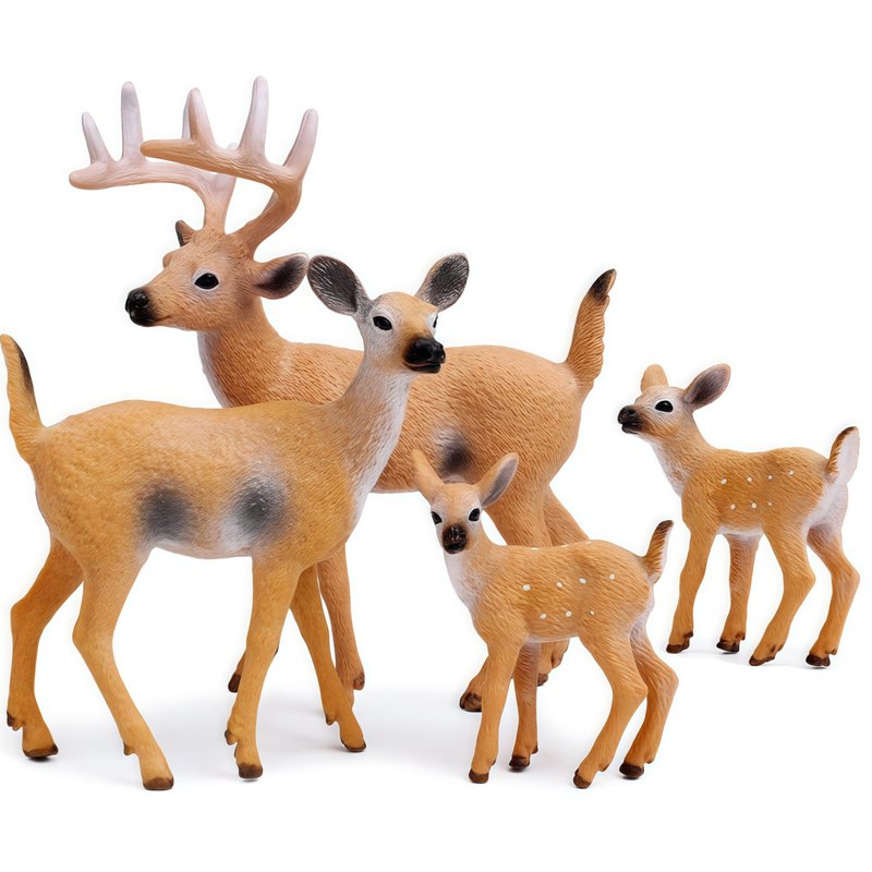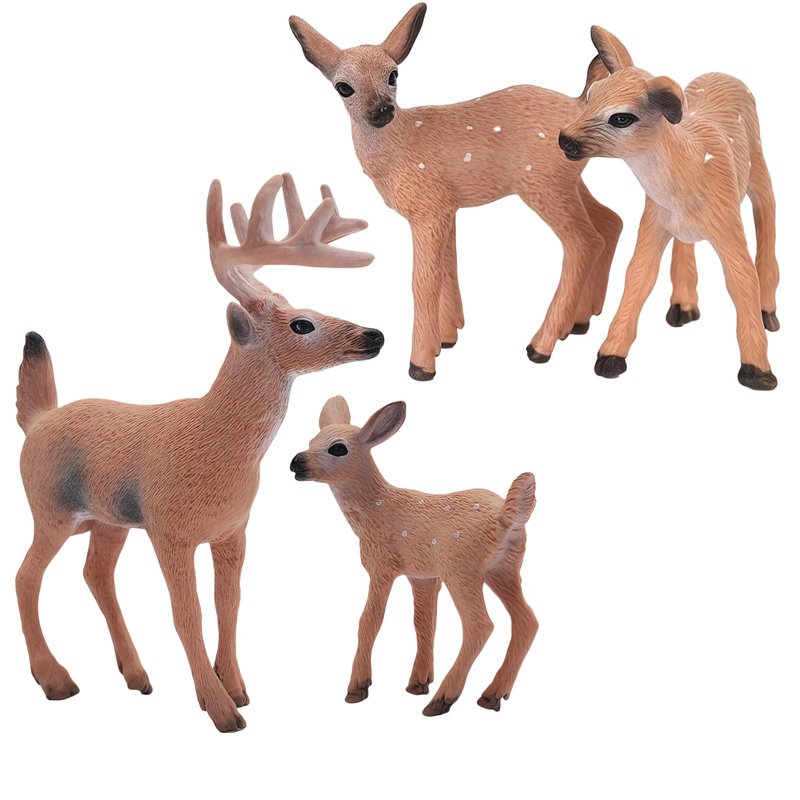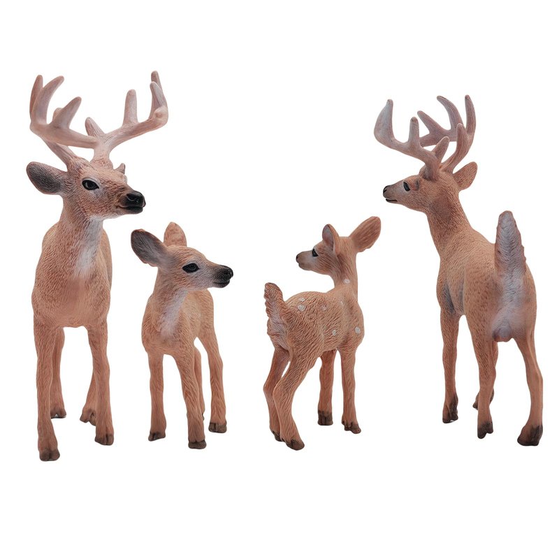 Gemini&Genius Animal Toys Whitetail Deer Figurines with Cub, 4Pcs Reindeer Family Woodland Animal Toys, Great for Kids Party Favors, Treasure Box Prizes, Goodie Bag Fillers, Family Fun or Cake Toppers