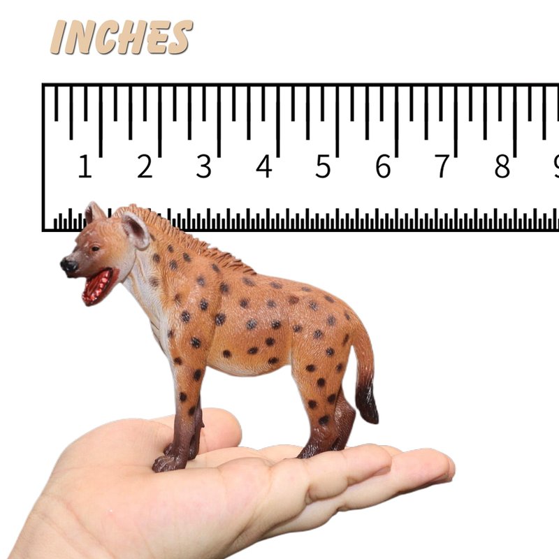 - 【Safe Material】This Animal Figure was made by high quality durable rubber, Non-Toxic Paint and Odorless. Measuring 6.5 inches long and 4 inches tall, this hyena toy is perfect for small hands to grip and explore.