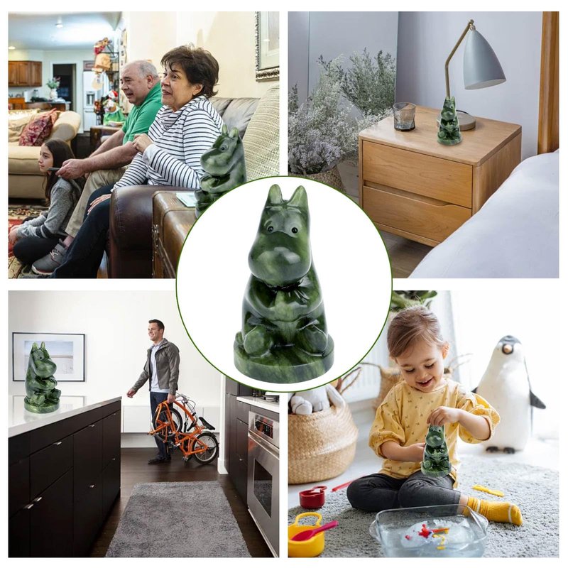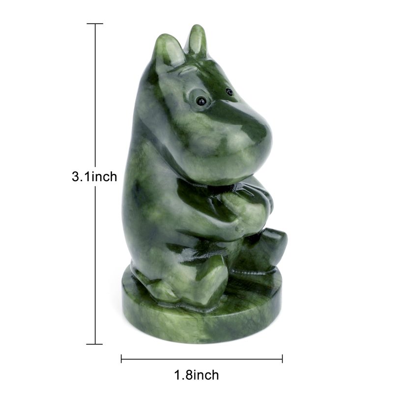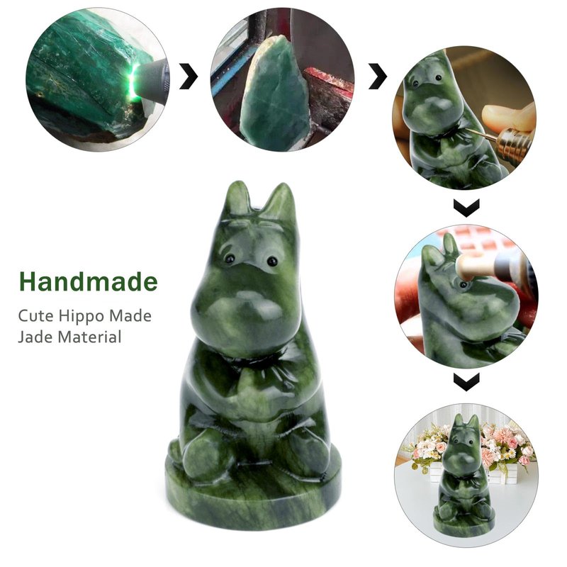 gemshan Hippo Statue Hand Carved Art Natural GreenJade Animal Figurine for Home Office Decoration with Luck