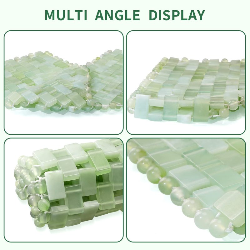 The jade eye mask is made of 100% pure jade and contains a variety of trace elements needed by the human body. We select the best quality, xiuyan jade raw, after strict pick up, hand-woven into exquisite jade sleep mask, just for you can have a quality experience. Product Name: Jade eye mask Craft: Hand weaving Material: 100% natural xiuyan jade stone How to use: After cleansing, gently apply the jade mask to your forehead and eyes and relax for at least 10 minutes. Relieve wrinkles and tension around these repressed areas. You can put it in the fridge before using it for a better experience. After work,lay the slightly warmed in hot mask over eyes to help promote lymphatic drainage in your face, Which can help to relax and relieve the fatigue of the day.