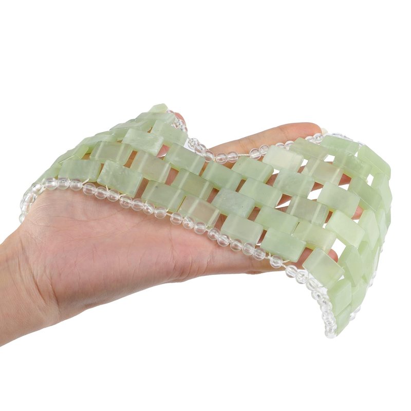 - Cold Jade Stone Eye Mask:This refined, elegant instrument helps soothe the skin and reduce puffiness! It drains the lymph nodes and promotes blood circulation. The natural coldness of the jade and the heaviness of the mask helps relieve sinus issues, closes pores and reduces wrinkles.