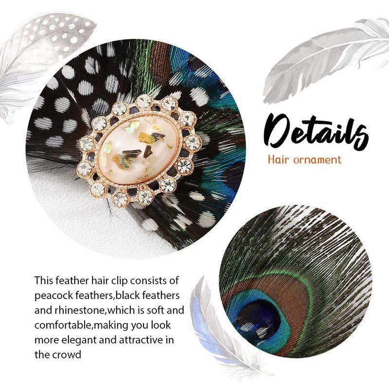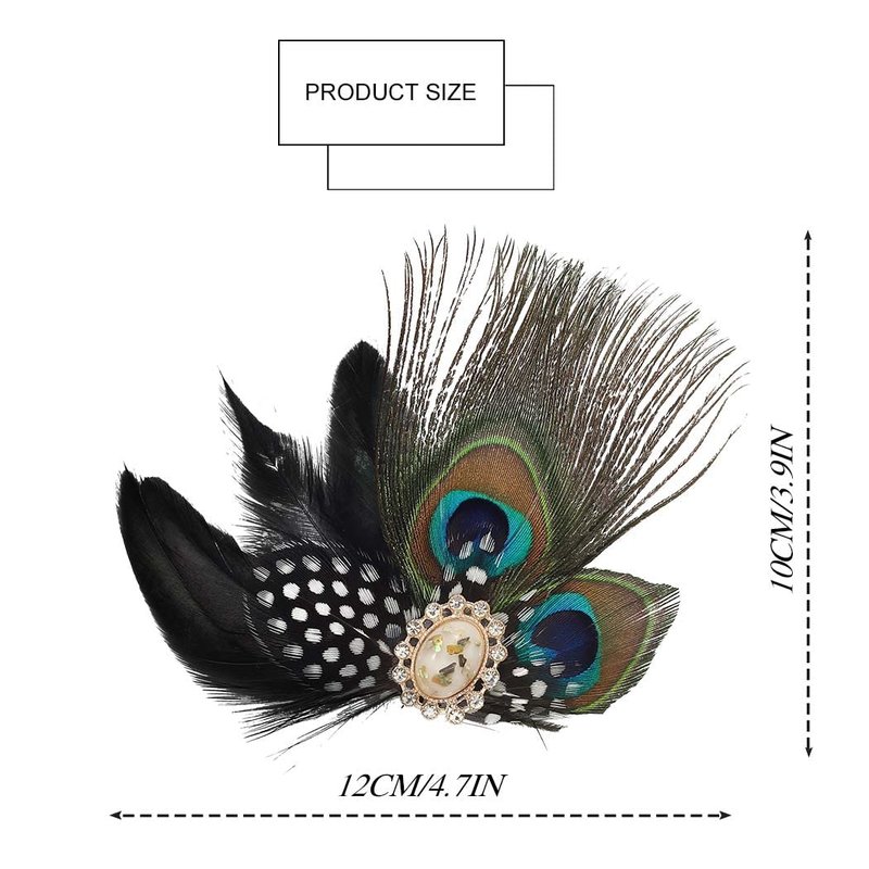 GENBREE 1920s Flapper Headpiece Black Feather Hair Clip Peacock Cocktail Hair Accessories for Women