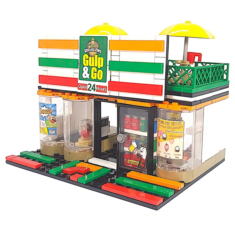 - Ultimate Urban Corner Store Build – Create a lively city scene with General Jim's 'Gulp & Go' Modular Convenience Store & Gas Station Set! With 320 detailed pieces, this set lets builders 14+ design a vibrant street corner complete with gas pumps, a bustling mini-mart, and a rooftop patio for the ultimate urban vibe.