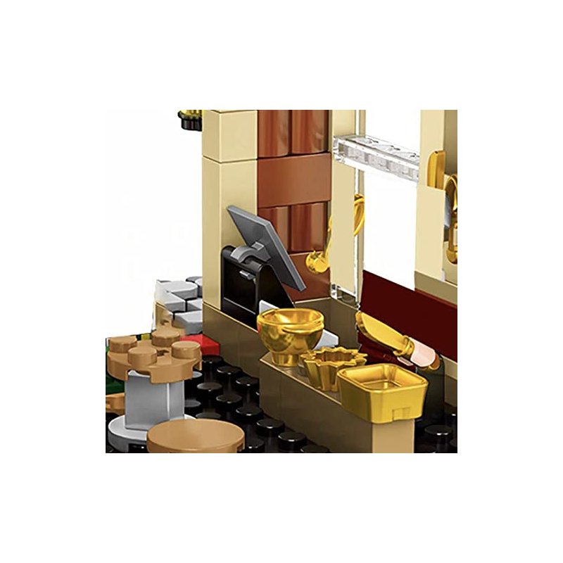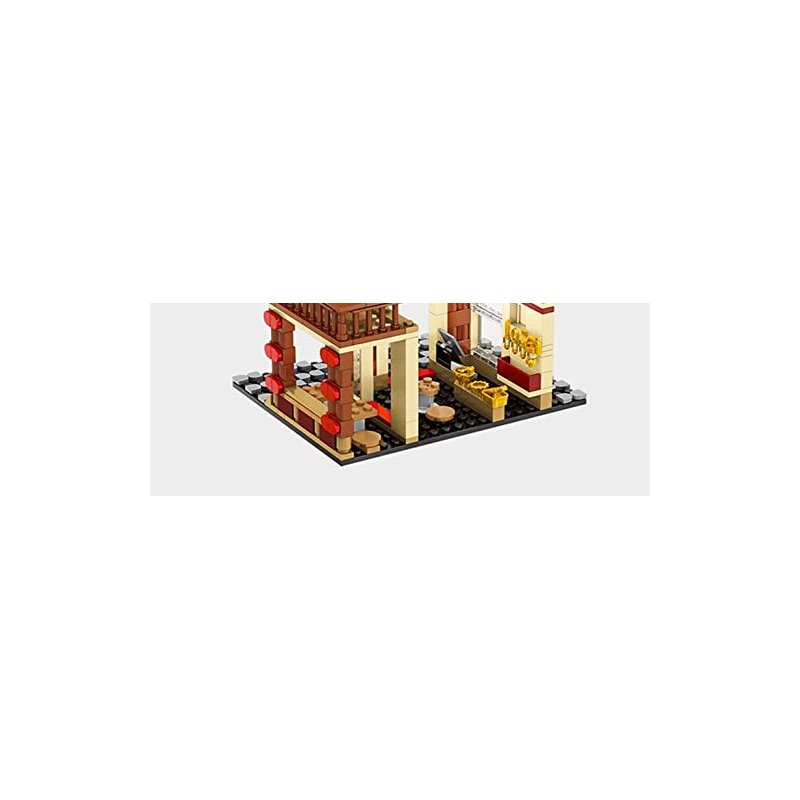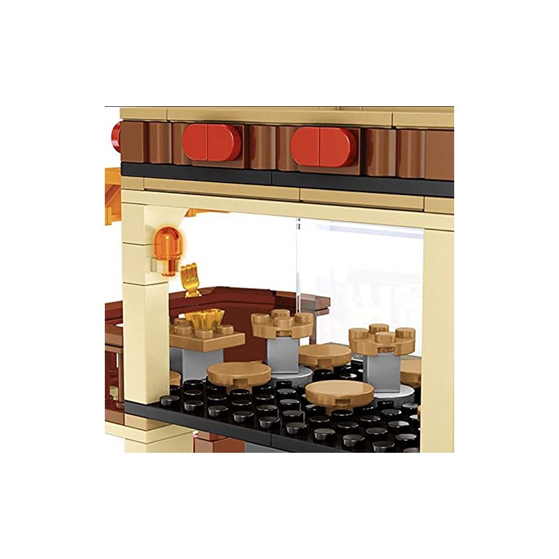 - With 362 pieces, this set features a two-level Japanese establishment, complete with a fully equipped kitchen with hanging cooking utensils and assorted bowls atop the work counter.