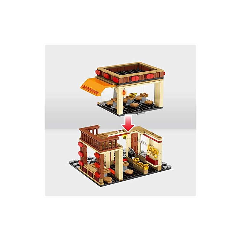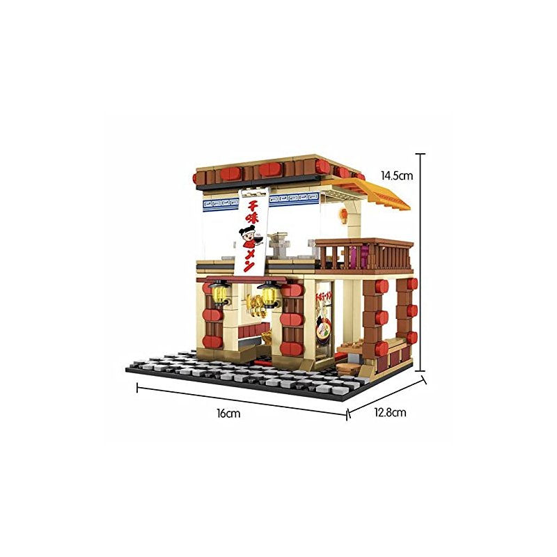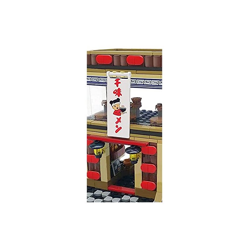 - Adorned with a quaint Japanese restaurant banner, this set also includes sticker art for the window, adding an authentic touch to your urban landscape. After assembly, marvel at the finished build measuring 16cm x 12.8cm x 14.5cm tall.