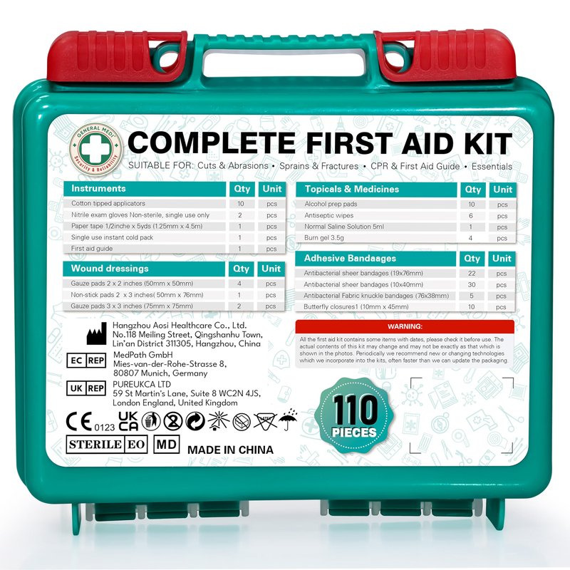 General Medi 110 Pieces Small First Aid Kit - HardCase First Aid Box - Contains Premium Medical Supplies for Travel, Home, Office, Vehicle, Camping, Workplace & Outdoor
