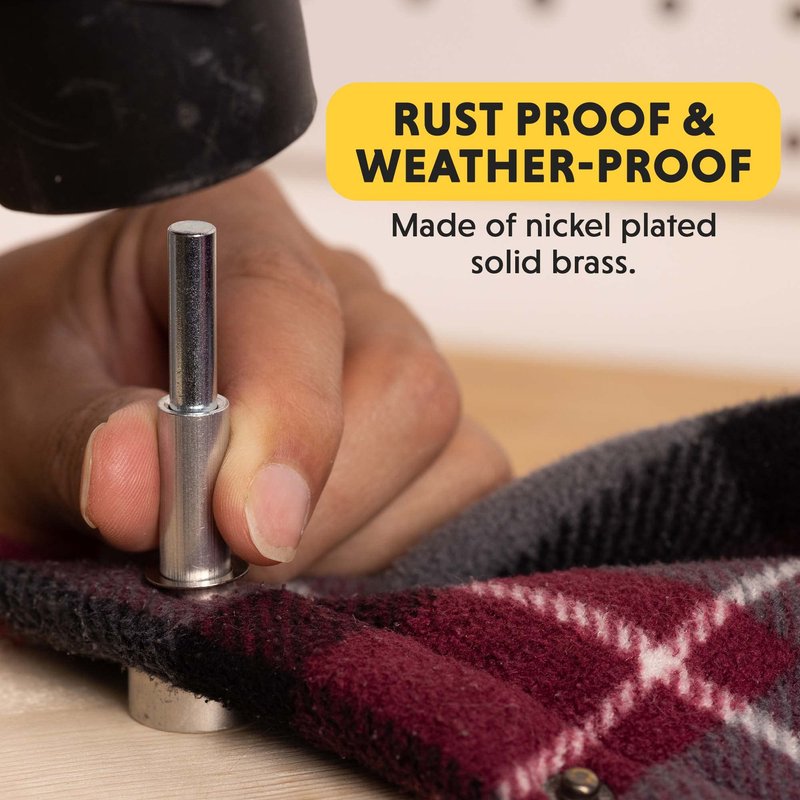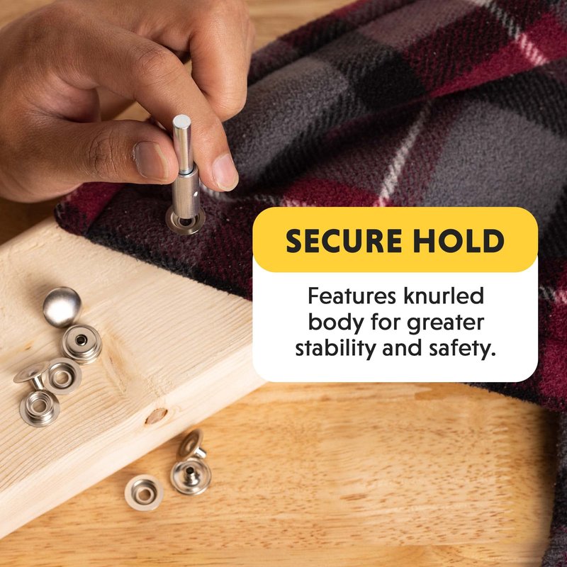 - The snap fastener setting tool features a knurled body for greater comfort and safety; Snaps are made of brass and nickel-plated for added durability
