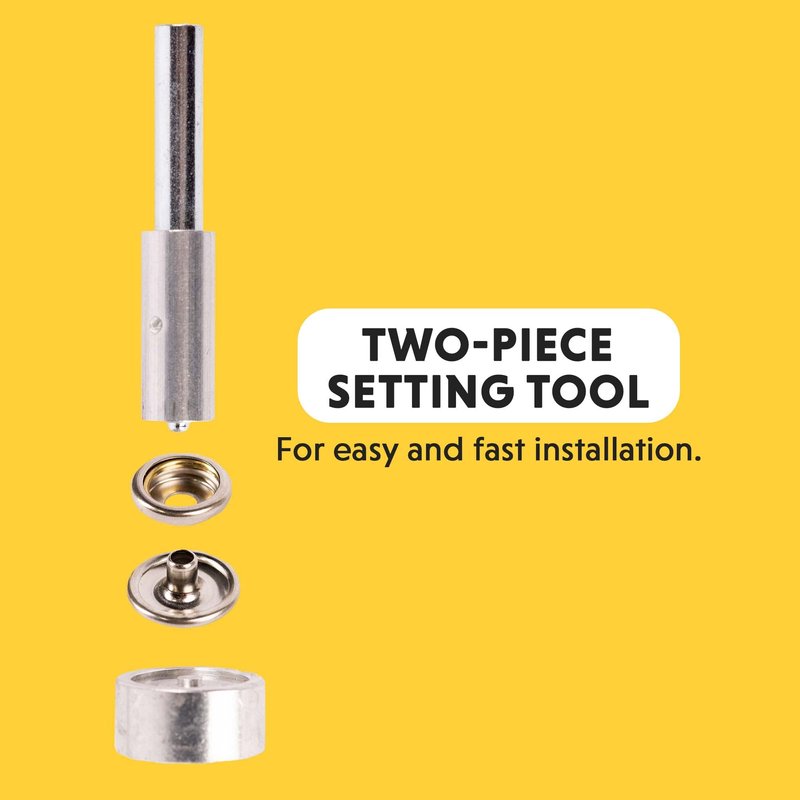 - This snap fastener kit comes with 6 fasteners and a 2-piece setting tool to connect the fastener to the article of clothing or leather