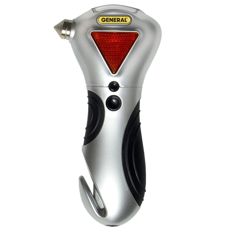 General Tools 7902 4-in-1 Car Escape Tool - Window Breaker, Seat Belt Cutter, Flashing Hazard Light, LED Flashlight