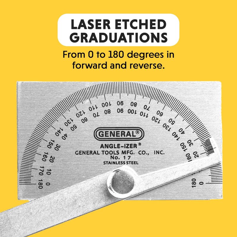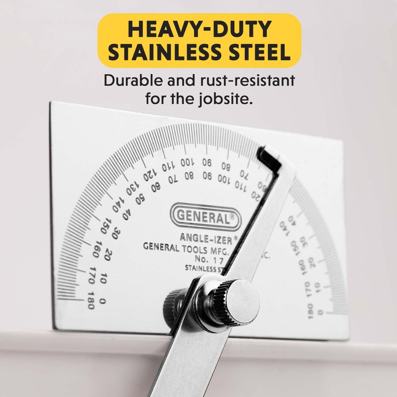 General Tools Angle Protractor #17 Stainless Steel Square Head - Measuring Tool for Carpenters & Woodworking Hobbyists