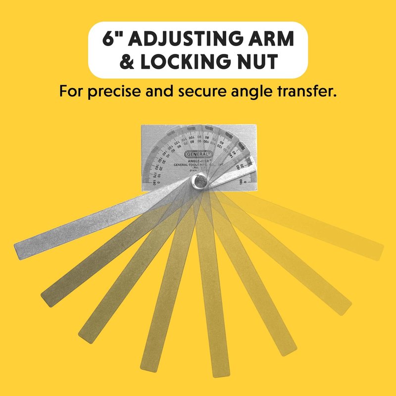 - PROTRACTOR ARM: It's constructed of durable stainless steel and features a 6" adjustable arm for setting the bevel, transferring angles, and finding your measurement. It's an essential tool and gift idea for a fellow carpenter, student, or machinist.