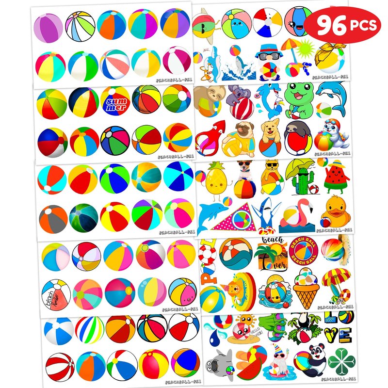 - 🌤️PACKAGE INCLUDES: The package includes 10 sheets, each with 96 PCS and measures 6.1 x 3.1 inches, as well as a full set of BEACH BALL tattoos.This amazing ornament assortment is sure to exceed your expectations.