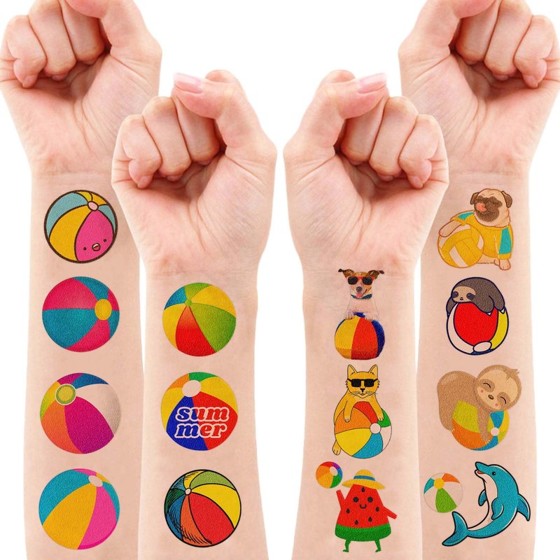 - 🏖️UNIQUE DESIGNS: BEACH BALLS tattoos are colorful, with design components mostly consisting of BEACH BALLS in different colors. These tattoos will complement your party style and contribute to the party spirit, making them a fun and appealing addition to your summer party.