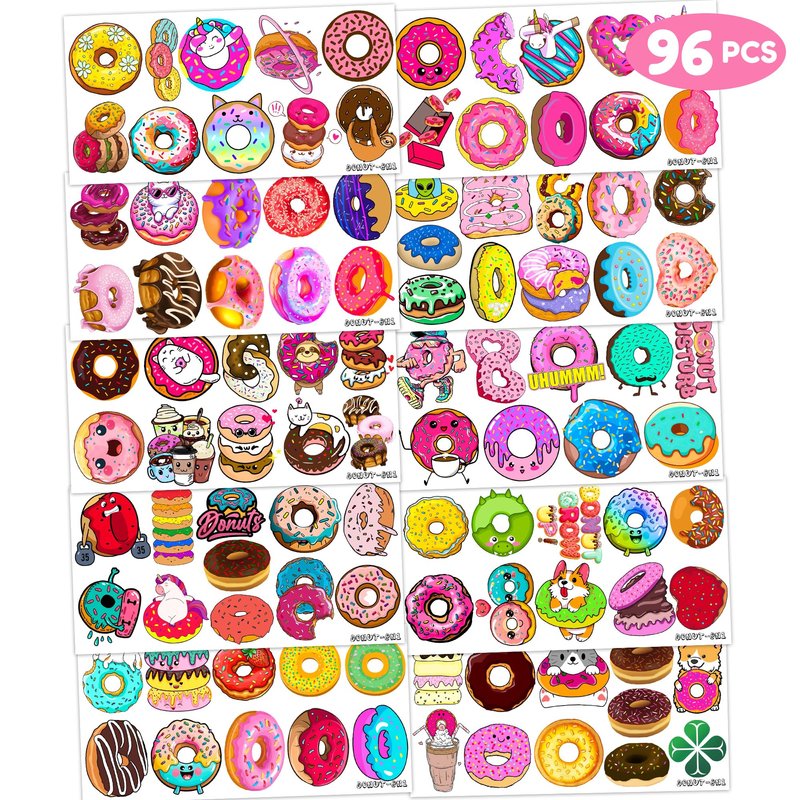 - 🍩PACKAGE INCLUDES:The package includes 10 sheets, each with 96 PCS and measures 6.1 x 3.1 inches, as well as a full set of DONUT tattoos. This amazing ornament assortment is sure to exceed your expectations.