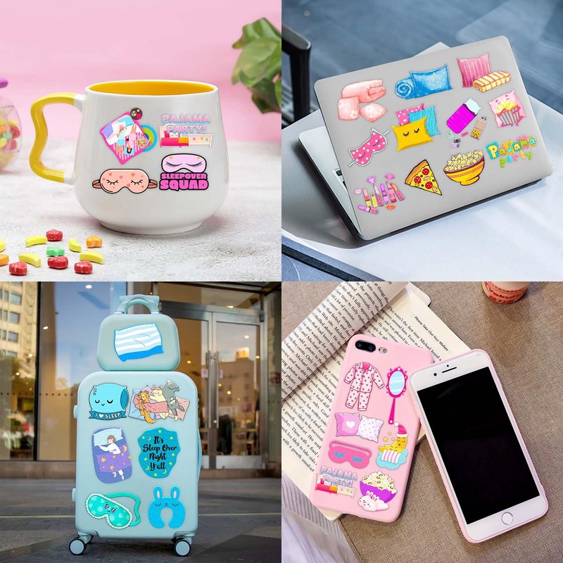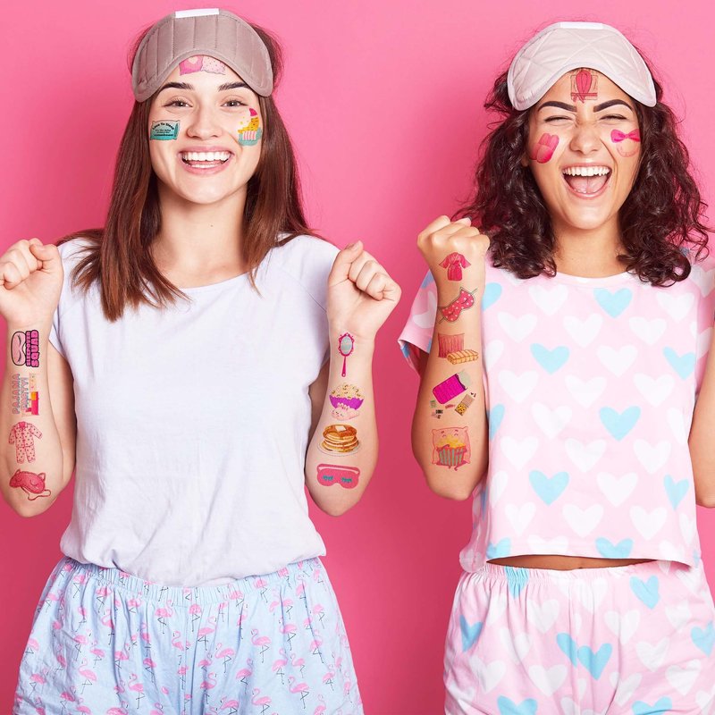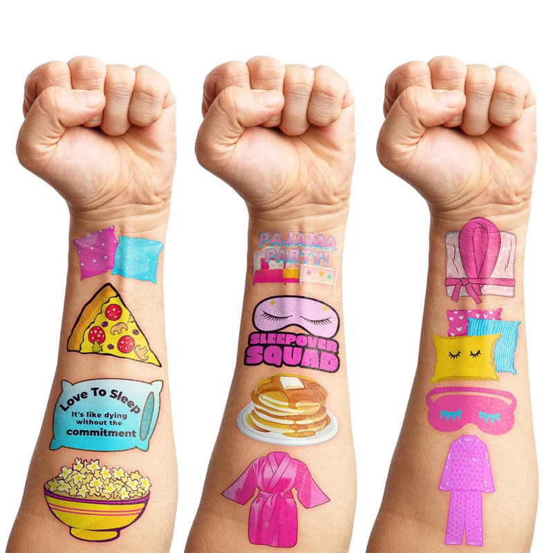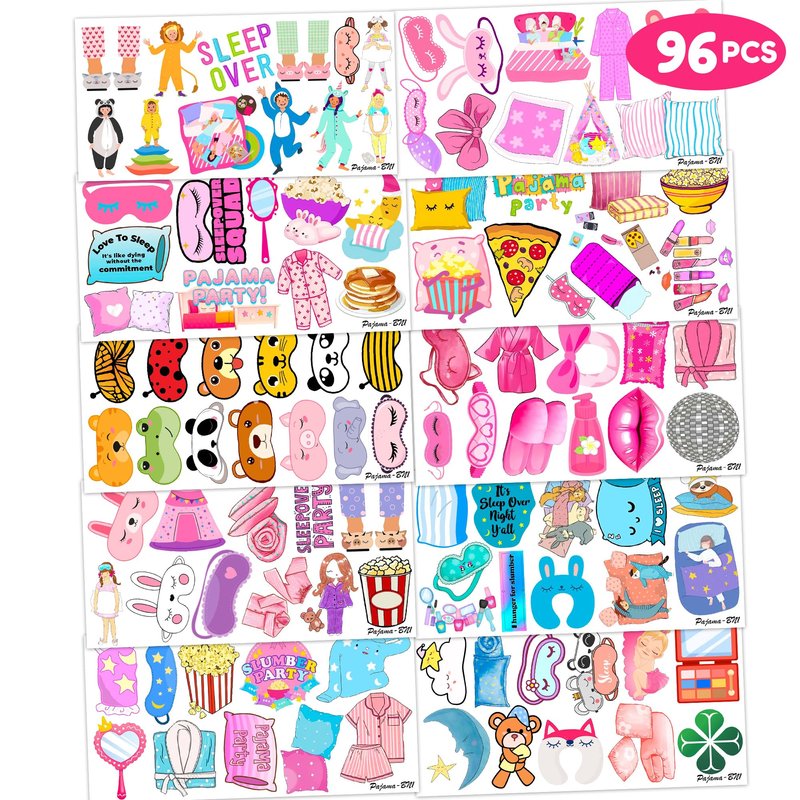 Generic 107 PCS Tattoo Pajamas Slumper Sleepover Party Decorations Party Favors Supplies Decor Spa Birthday Party Cute Stickers Gift for Girls Men Women Adults Kids Prizes