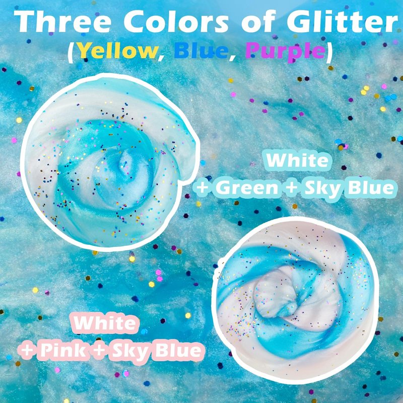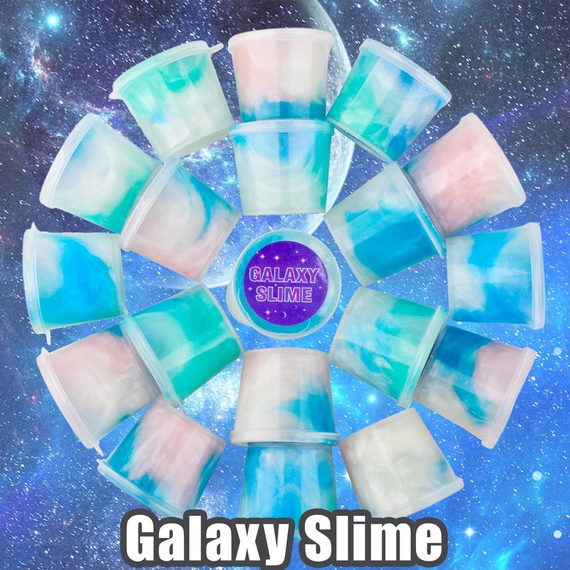 - 【Colorful Galaxy Slime Set】Includes 24 cups of Galaxy Slime, 2 colour combinations of 3 colours per tin and 1 bag of gold, blue and purple mix glitter to make your Slime party glow and sparkle! (24*1 oz)