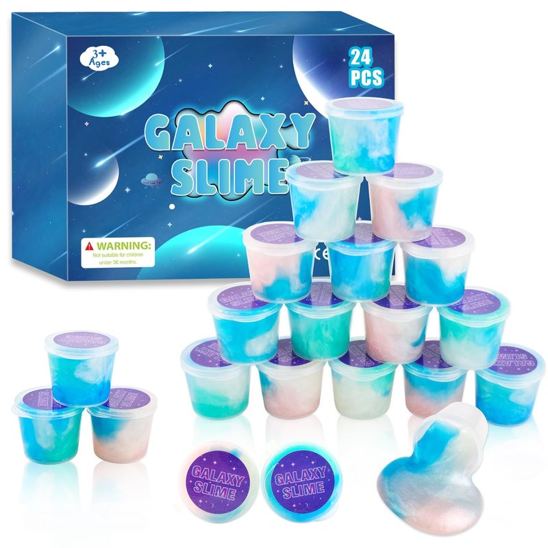 Generic 24 Pack Blue Mini Galaxy Slime, Super Soft & Stretchy Stress Relief Putty Toys, Classroom Reward, Christmas Stocking Stuffers, Girls and Boys Slime Party Favors