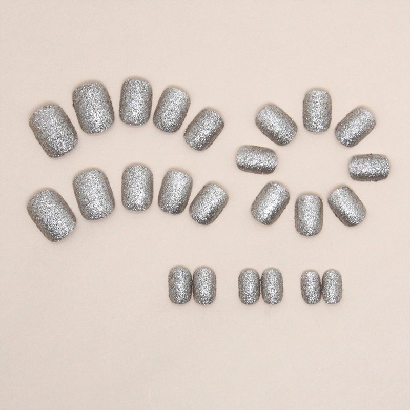 - 【Short Fake Nails】Silver Glitter false nails easy to wear and unloading, made by high quality ABS material, not easy to chip or break or fade, wouldn't hurt your nails.