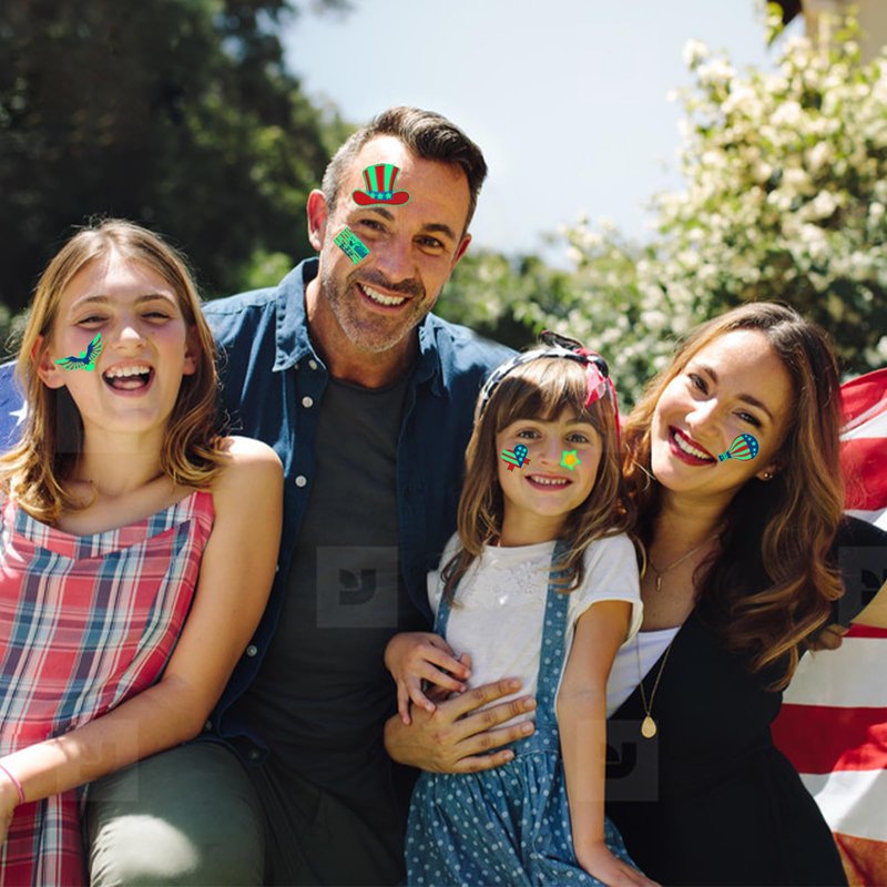 - LIGHT-UP CREATIVE INDEPENDENCE DAY PARTY Favours: These patriotic temporary tattoos are perfect for 4th of July party decorations, accessories, party supplies, party favors, Day decorations, USA decorations, kids gifts and more. You can also apply them on some smooth objects, such as glass, tiles, water bottles, plastic, gift boxes, mobile phone cases, etc.