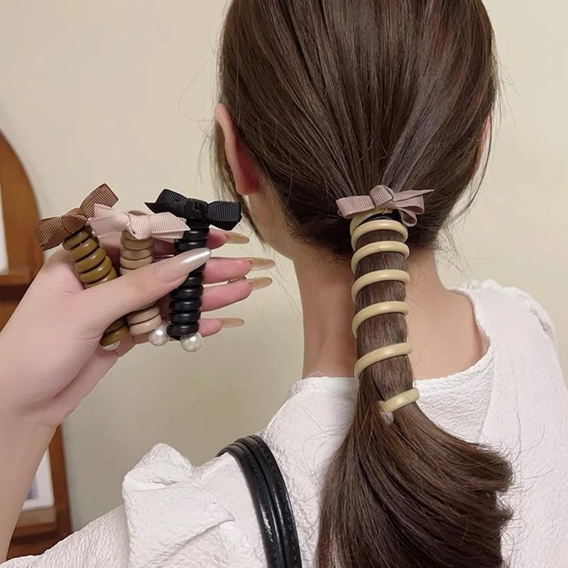 - Easy to use: This creative hair accessory is very easy to use,first tie the ponytail with a rubber band, insert the metal clip at the end of the phone cord into the rubber band, and then wrap the hair cord around the ponytail, pull the phone cord down, and then pull the hair out of the gap on the phone cord, you can get a very fashionable braid hairstyle