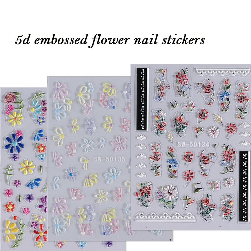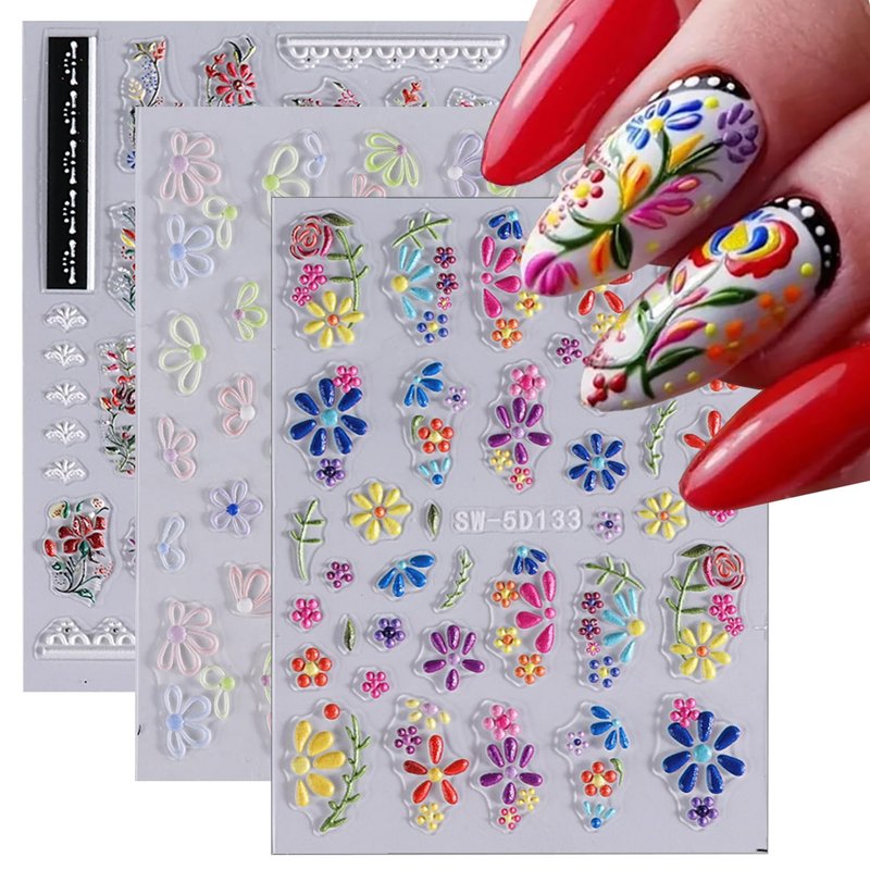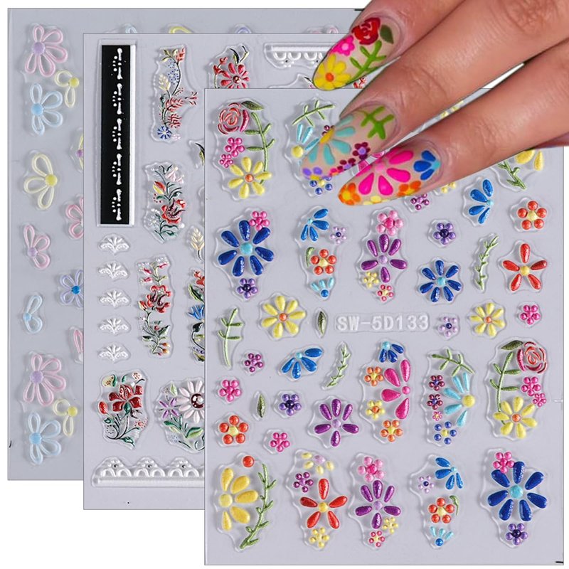 - Unique Nail Sticker Set: You will receive 3 sheets of colorful nail art stickers featuring varying 5d flower patterns, catering to your rich imagination for daily nail DIY and uplifting your mood.