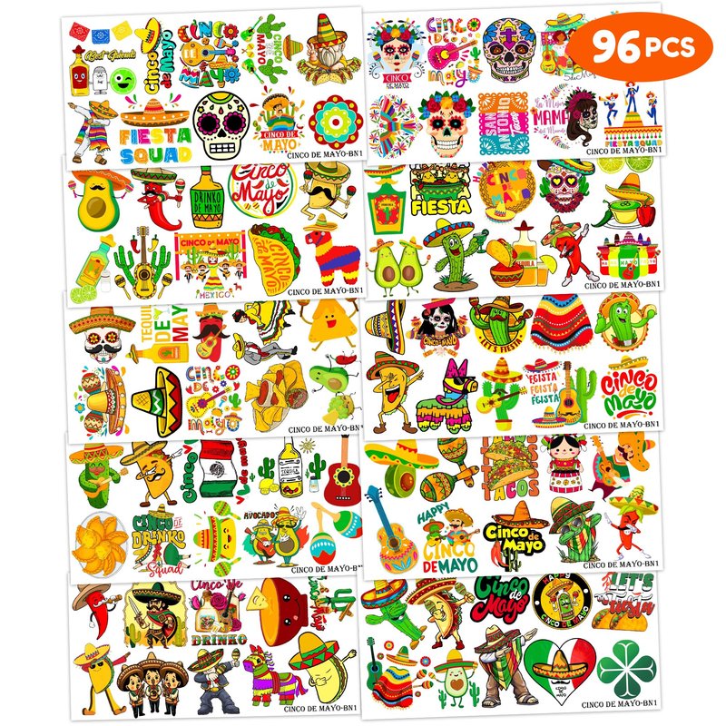- 🌮PACKAGE INCLUDES: The package includes 10 sheets, each with 96 PCS and measures 6.1 x 3.1 inches, as well as a full set of CINCO DE MAYO tattoos. This amazing ornament assortment is sure to exceed your expectations.