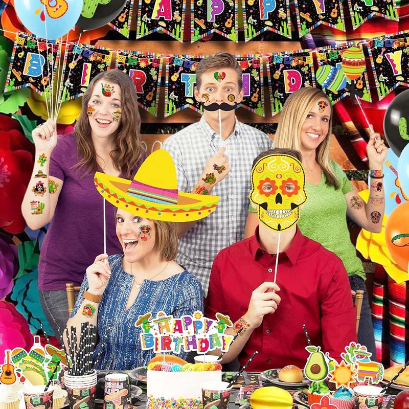 - 🔔APPLICABLE OCCASIONS:These innovative Mexican taco party tattoos are excellent for CINCO DE MAYO decor, Halloween, Day of the Dead decoration, and any other Mexican themed fiesta party decorations, Halloween party supplies, birthday, baby shower, wedding, family event, and more.