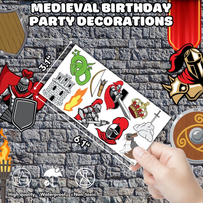 - 🎁【FANTASTIC GIFT OPTIONS FOR MEDIEVAL KNIGHT PARTY SUPPLIES AND DECORATIONS】: When you adorn your child's birthday party with a Medieval Knight theme, you'll be showered with compliments. Don't miss out on giving your boys and girls Construction tattoos, as they make for a wonderful small gift.