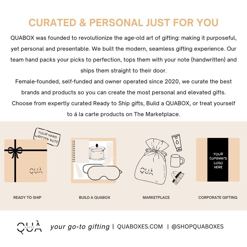 Don't wait for the registry to gift a beautiful bride-to-be something celebratory. Enjoy this milestone with a simple BRIDE gift that will look great in her newly decorated hands. It's the perfect small gesture before the big day. BRIDE Includes: DIAMOND Eye Gels QUABOXES White Thick Silk Scrunchies BRIDE 'S Emergency Kit Keepsake Box & Handwritten Card Each BRIDE gift is carefully curated and hand-wrapped box ships as a gift, with a handwritten note.
