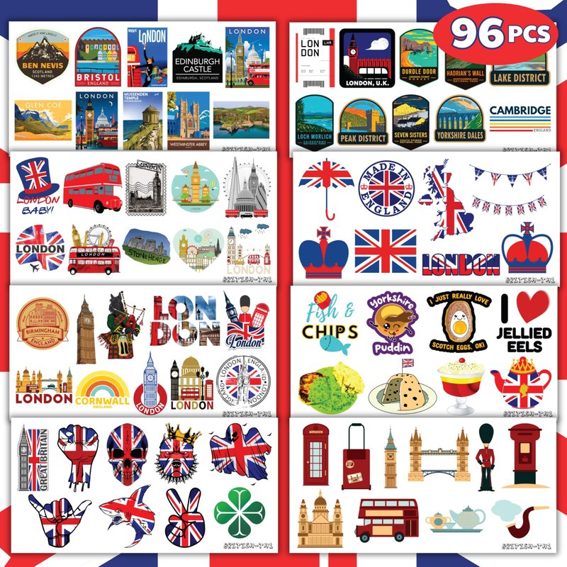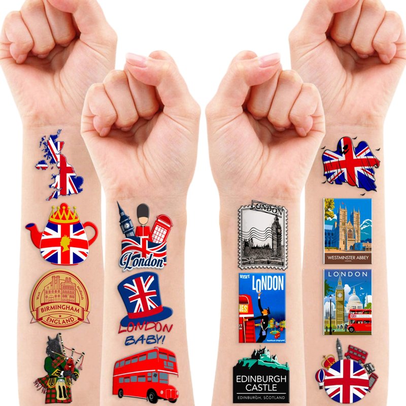 - Style: British Temporary Tattoos Sticker; Birthday Party Supplies; Birthday Decorations; Party Favors; England; UK; United Kingdom;London; Scotland; Wales;