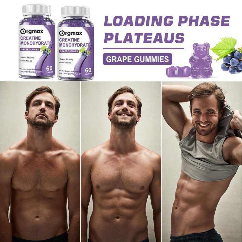 Generic Creatine Monohydrate Gummies, Delicious Grape Flavored for Men & Women, Enhanced with Collagen & BCAA, Easy-to-Swallow Chews for Muscle Strength, Energy Boost, Pre-Workout Supplement(2 Pack)