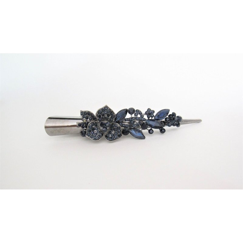 Generic Dark blue flower and dark silver alligator hair claw clip with crystals