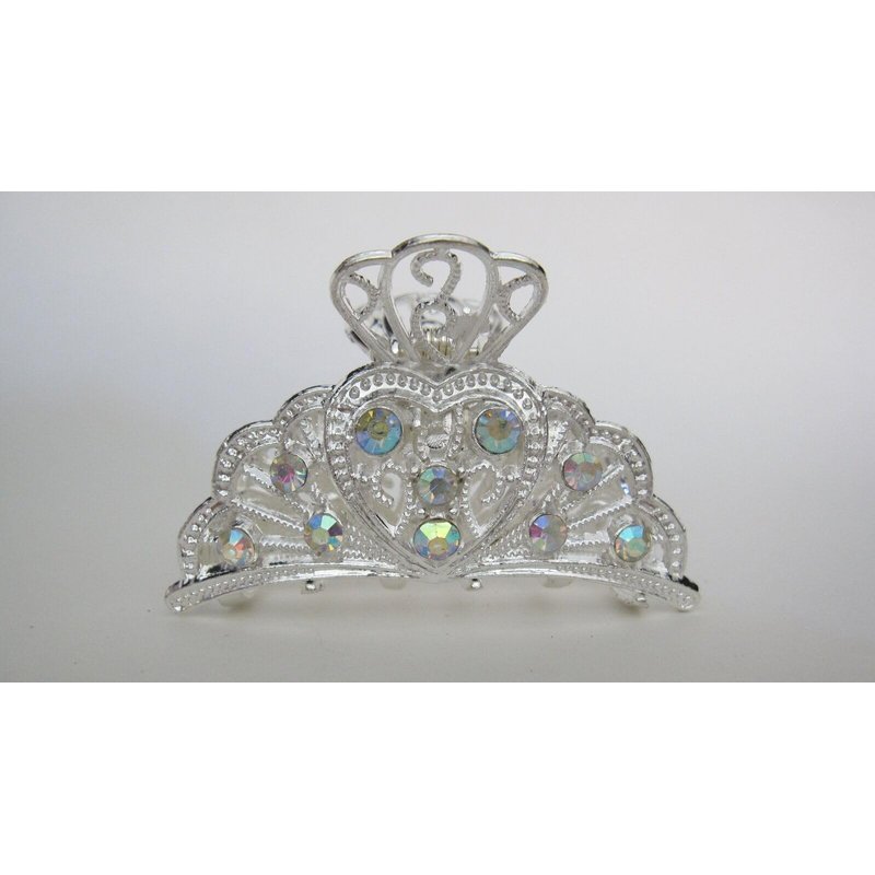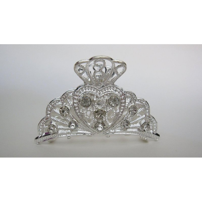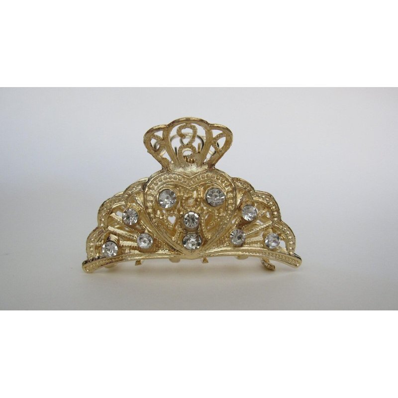 Generic Gold or silver clear or AB crystal heart metal hair claw clip jaw clip (Primary color: Gold/clear crystals)