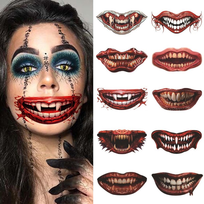 Generic Halloween Temporary Horror Scary Mouth Tattoo Stickers Adults Women Makeup Face Funny Art Decorations Accessories Masquerade Party Supplies 10PCS