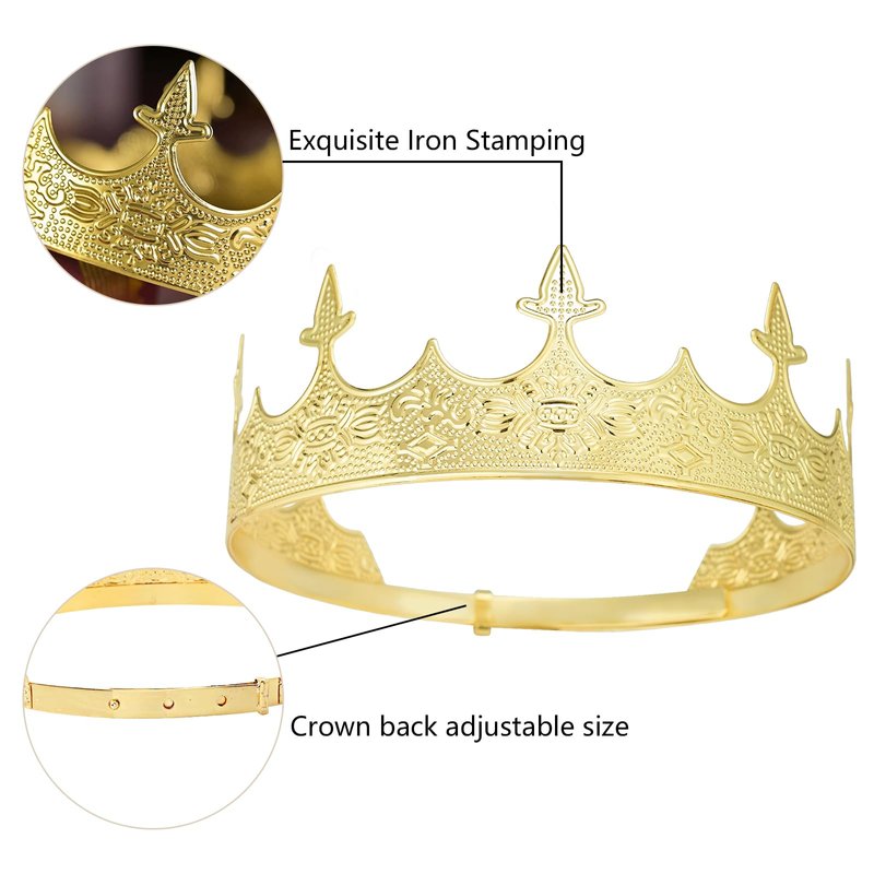- ♕ KING CROWN-Adult Men King Crown in Antique Finish design gives you a regal look, makes you revisit historical memory and feel the changes of the times. Best men's tiara crown for costume and shows.