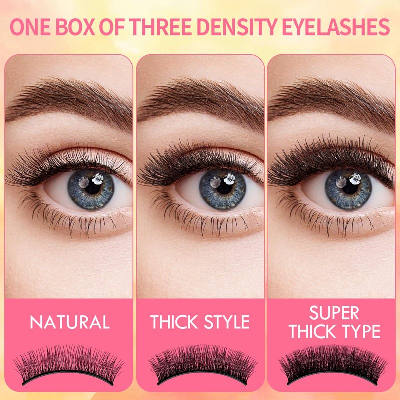 - Three Different Types Eyelashes: There are three different types of reusable self -adhesive eyelashes in this product that meets all styles in your daily needs. This false eyelashes is very soft and light. It just like your real eyelashes that gives your eyes a real and vivid look in every occasion and it is comfortable for your eyes.