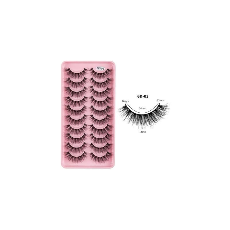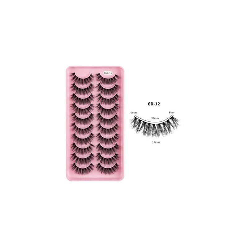 Generic Lashes Faux Mink False Eyelashes, 10pcs, Wispy Long Length, Fluffy (6D-02), black