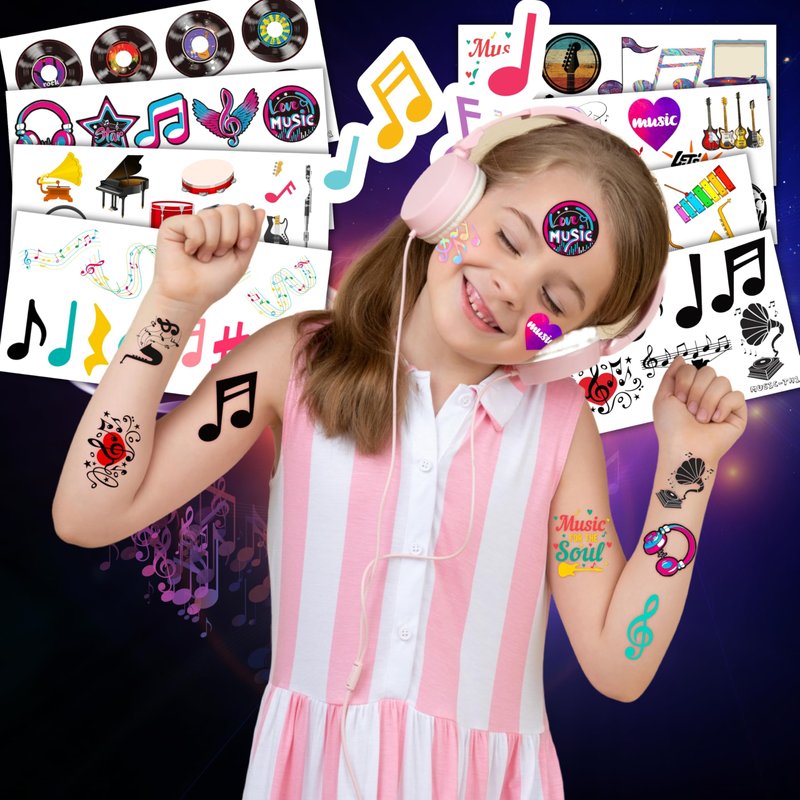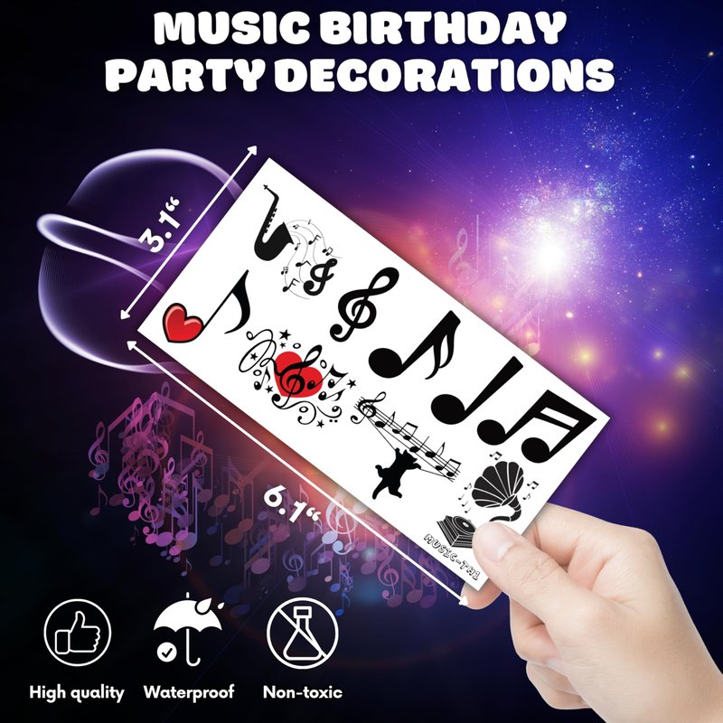 - Style: Music Temporary Tattoos Sticker; Birthday Party Supplies; Birthday Decorations; Party Favors; Note;