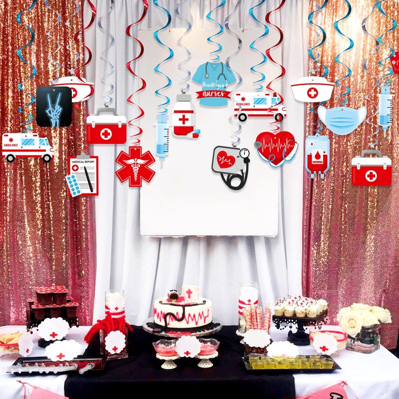 Generic Nurse Swirl 30 Pack Nurse Graduation Party Decoration Doctor Nursing Birthday Supplies Hanging Swirl Spiral Streamers