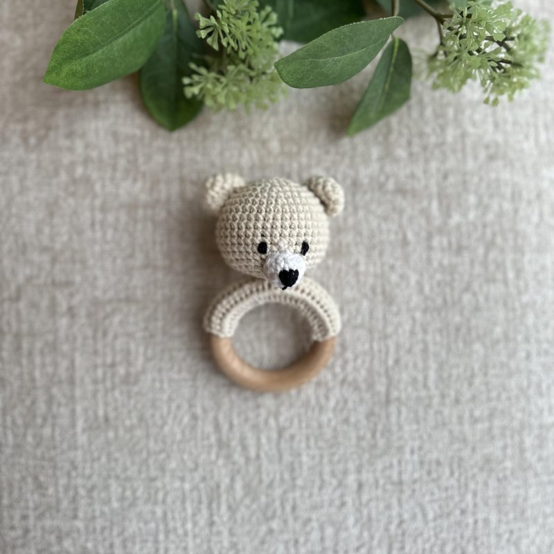 Generic Organic Cotton Handmade Crotchet Bear Rattle, Toy, teether and Pacifier Holder Baby Shower/Birthday Gift Set., Small, Beige