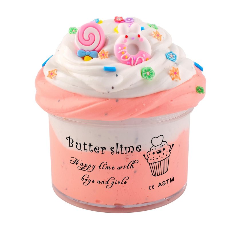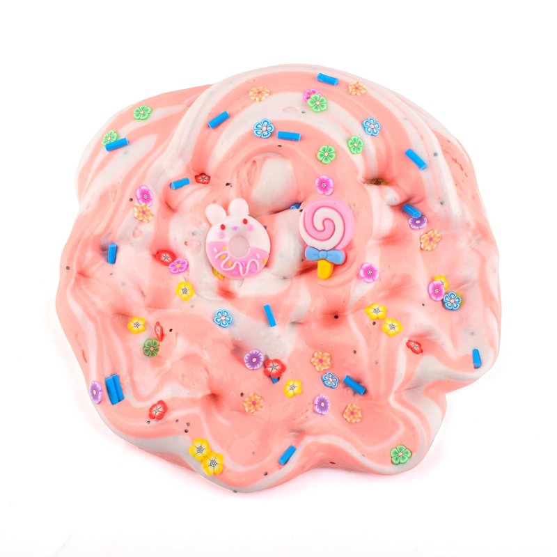 Generic Pink Butter Slime, Lollipop and Round Bunny Add Ins, Super Soft and Non-Sticky, Birthday Gift, Party Favors for Girls Boys, DIY Scented Stretchy Slime Toy(7oz)