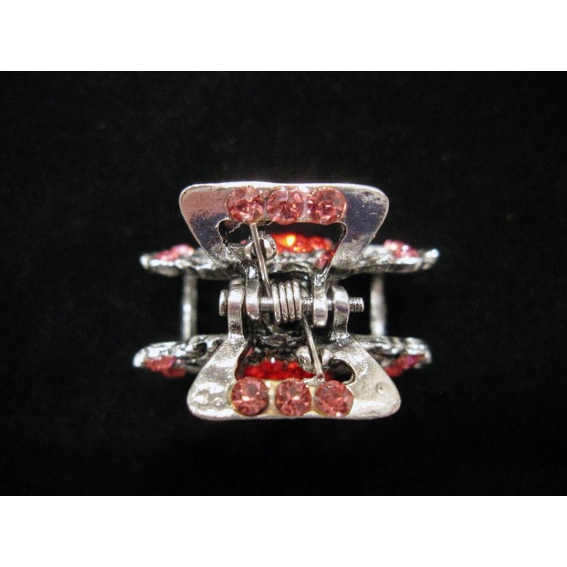 Generic Small pink red silver metal hair claw clip with crystals bridal clip