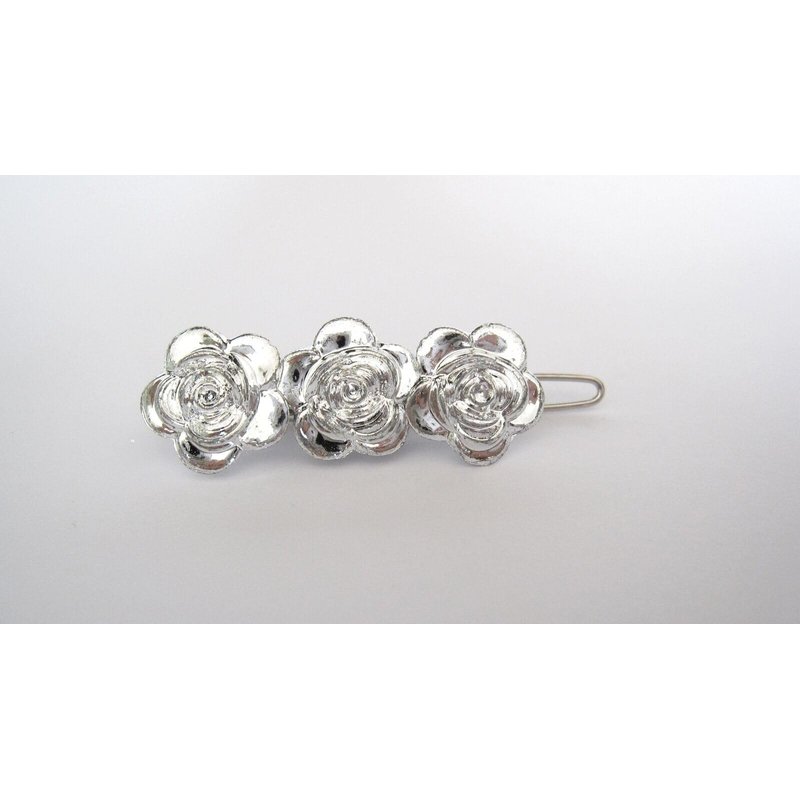 Generic Small shiny silver flower hair pin clip barrette for fine thin hair (Clip quantity: 2 clips)