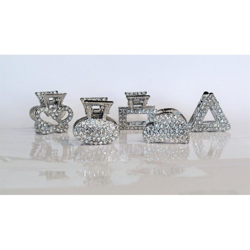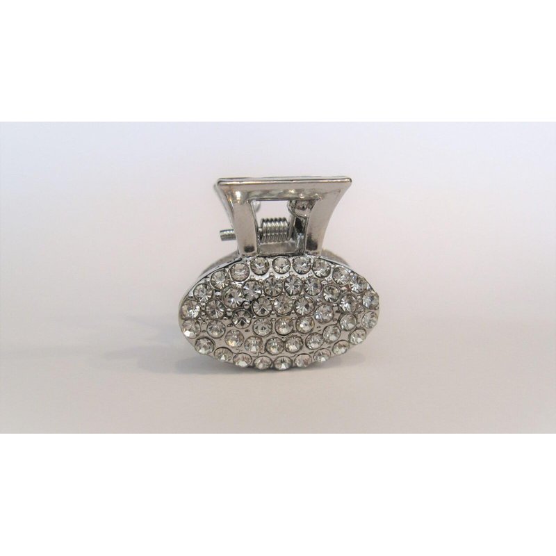 Generic Small silver metal hair claw clip with crystals stocking stuffer gifts for (Pattern: Oval)
