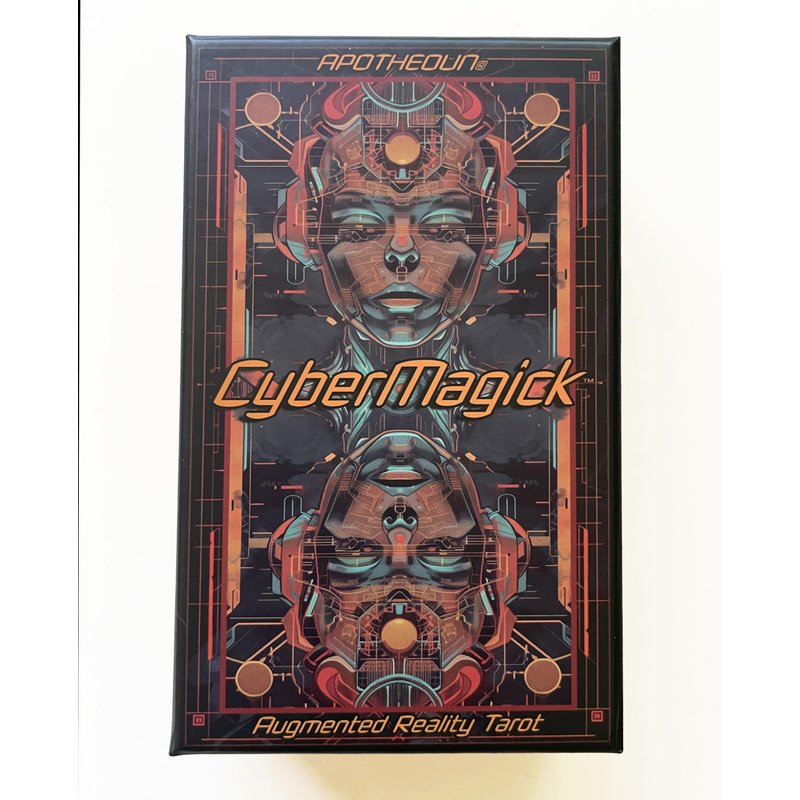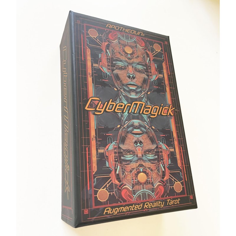 Dive in to the chrome-drenched world of CyberMagick Augmented Reality tarot deck by APOTHEOUN. Physical deck of tarot Cards come to life with animations and automated readings through the CyberMagick app, available free on iOS and Android. 78 cards each
